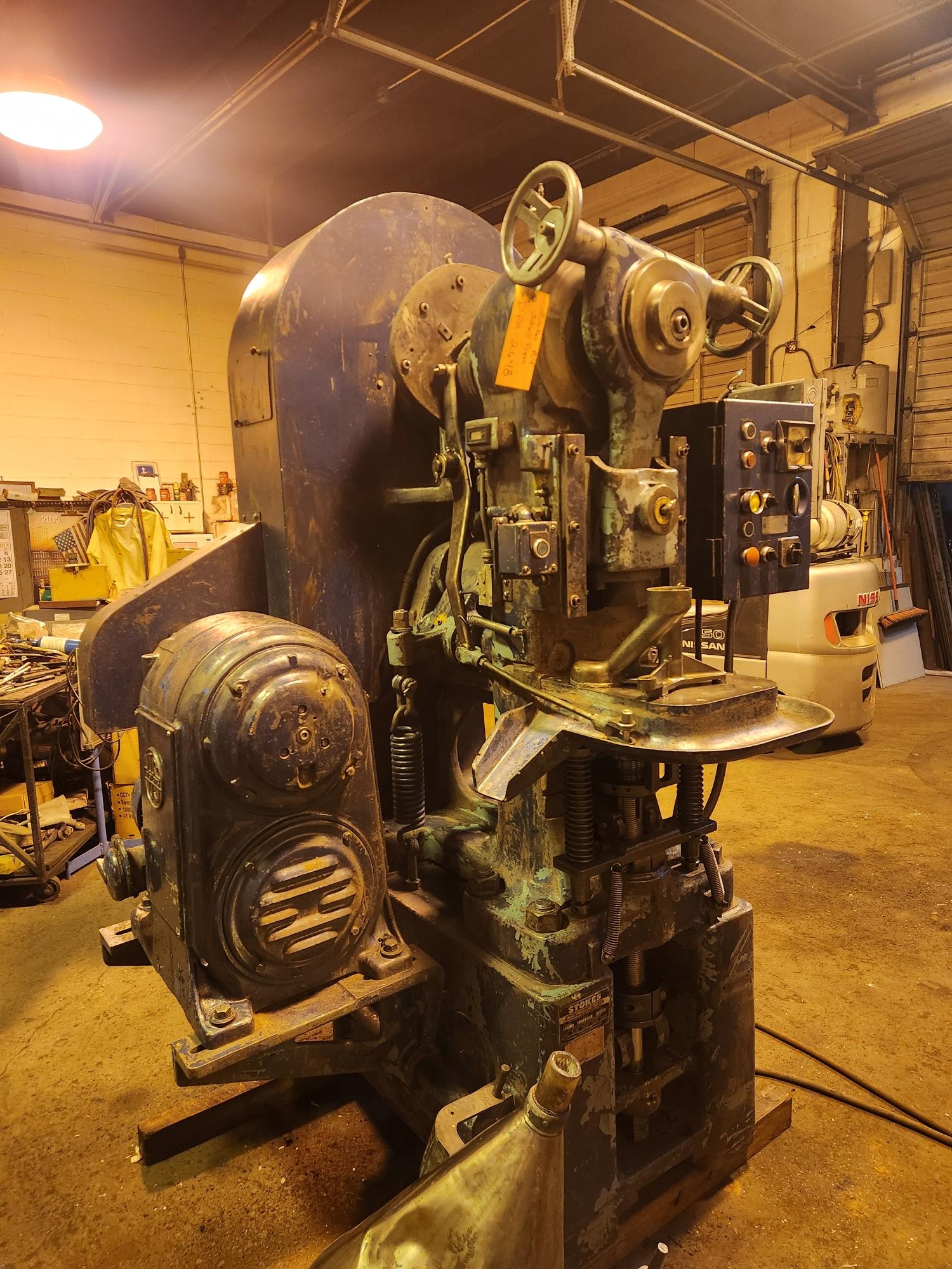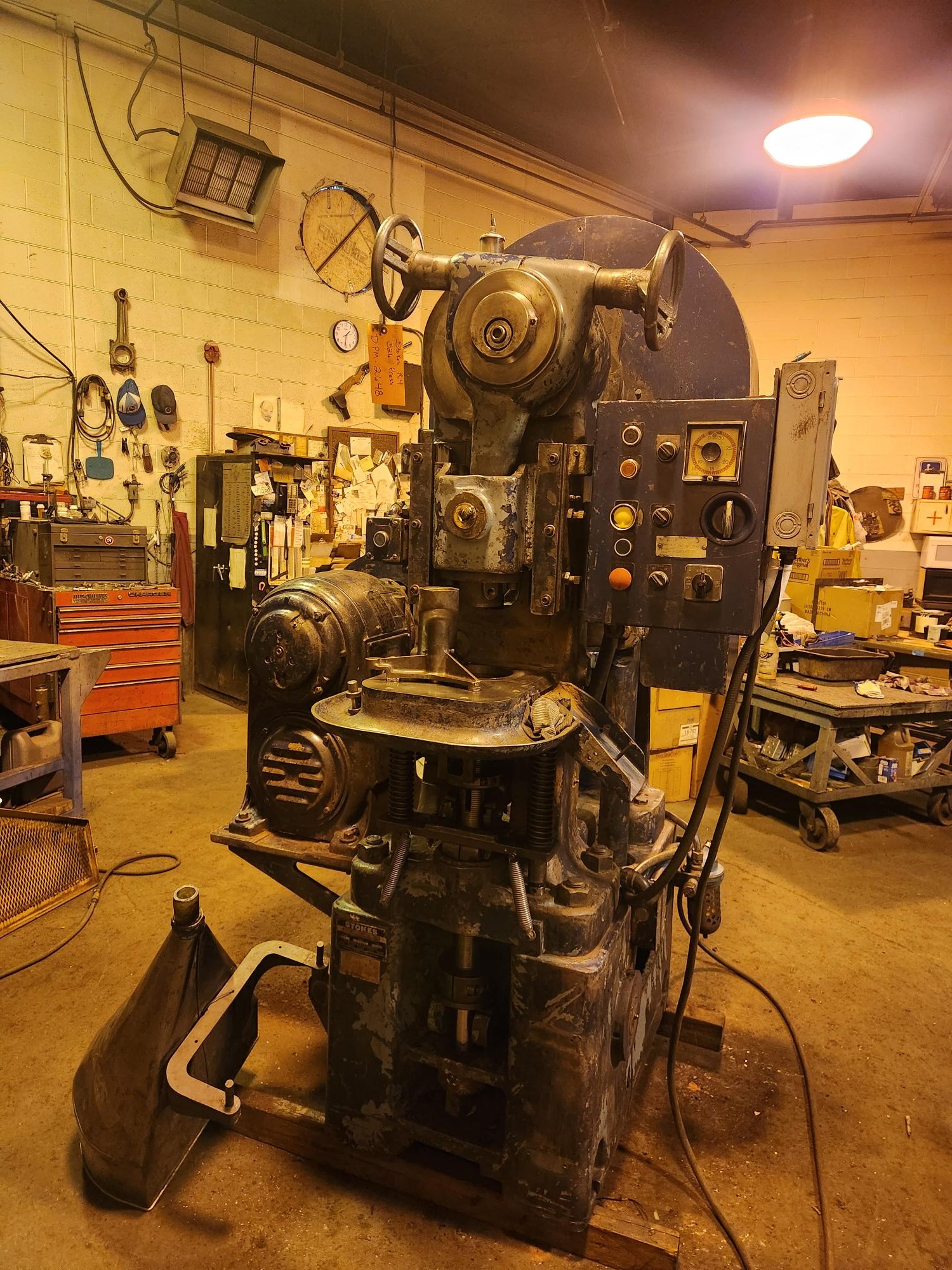 Stokes 526-1 R4 Tablet Compacting Press, 20 Ton, single station, mechanical, dual motion, air clutch, 2 5/8″ maximum depth of fill, 3″ maximum part diameter, 7 1/2 ton ejection, powder hopper, bronze feed shoe